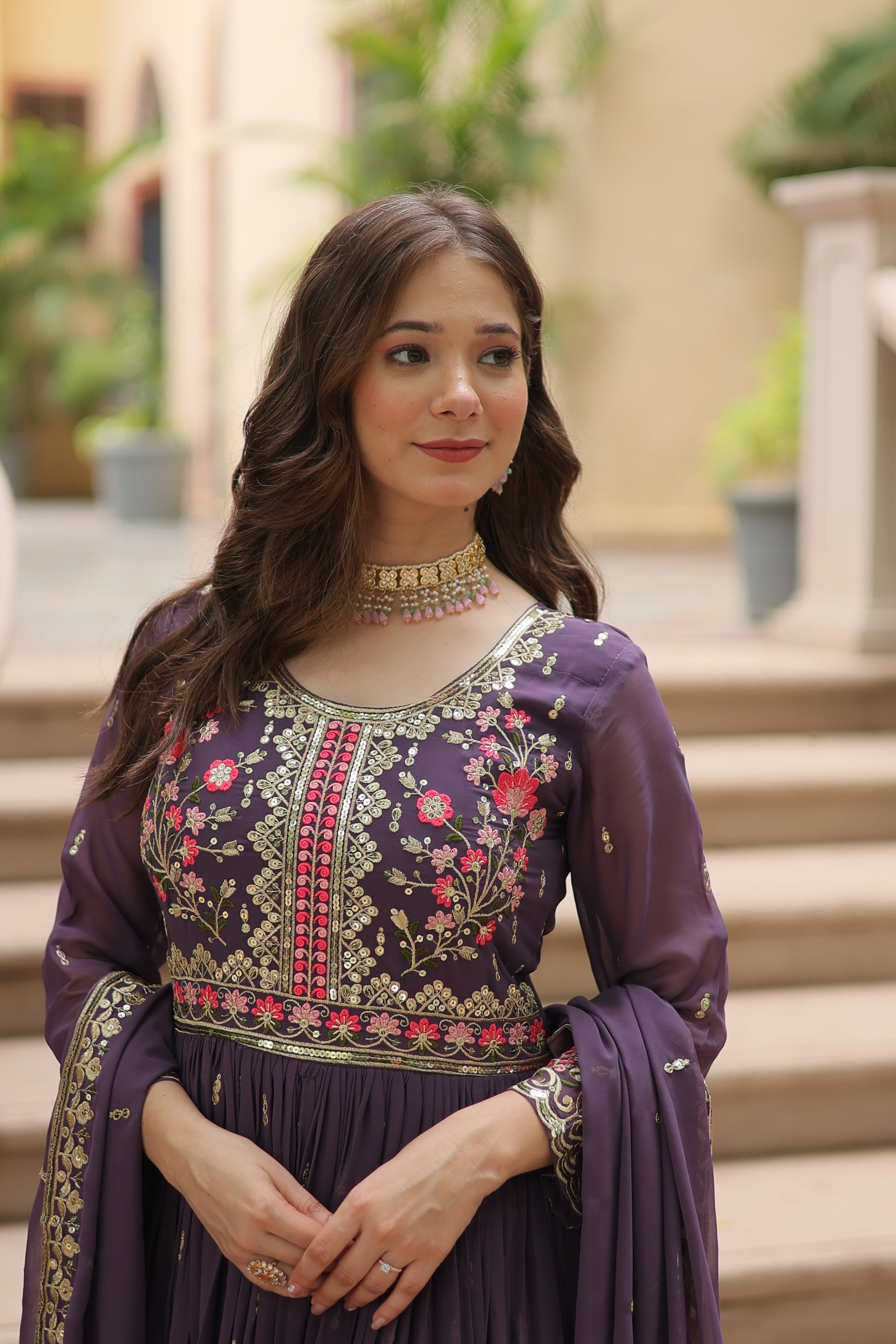 Elevate your style with our Faux Georgette Gown Sharara With Dupatta Sets. Made with premium faux georgette fabric, this set offers the perfect combination of comfort and elegance. The flowing gown and flattering sharara make for a perfect ensemble, while the soft dupatta adds a touch of grace. Perfect for a special occasion!