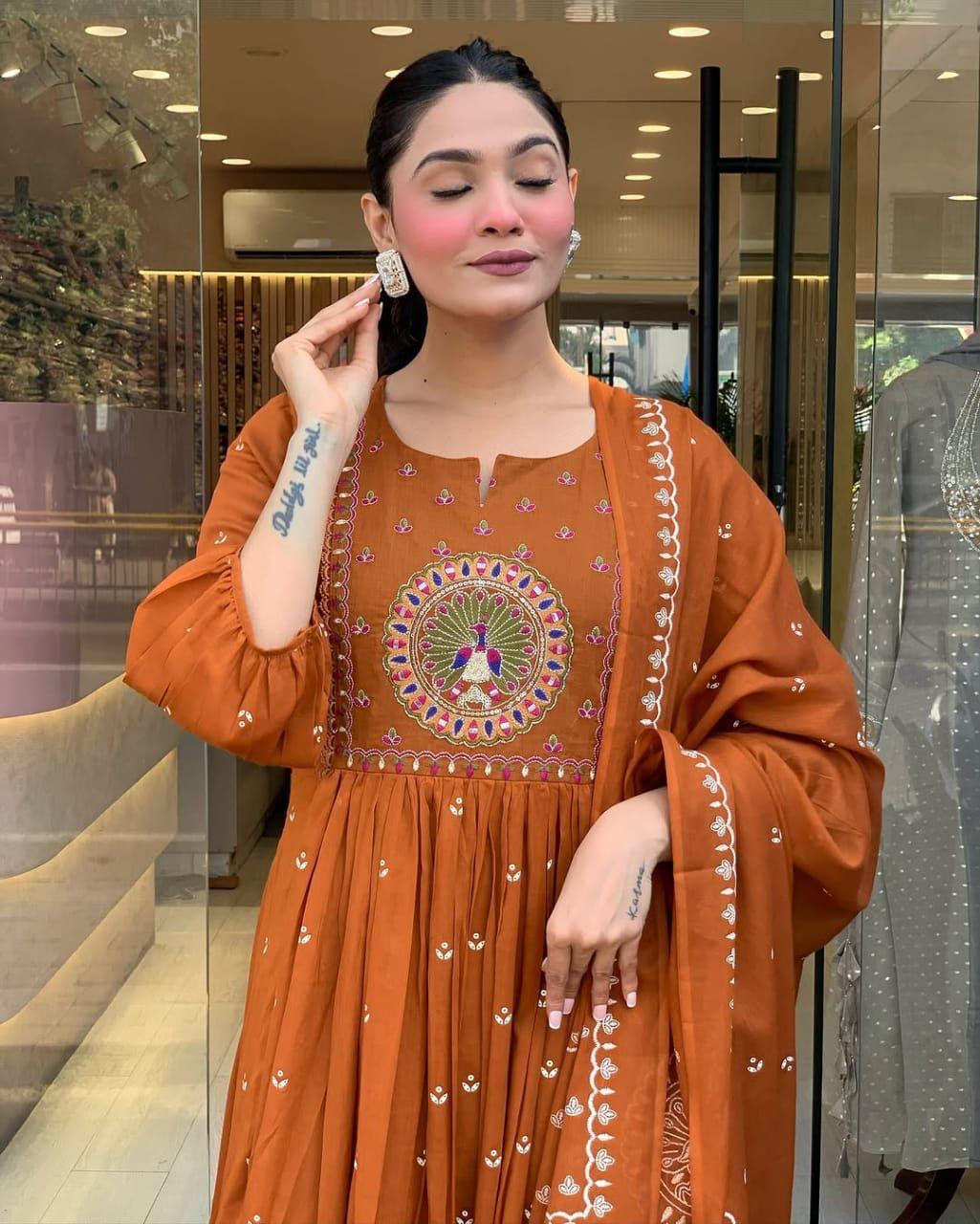 Cotton Anarkali Suit Set with Dupatta – Embroidered & Printed