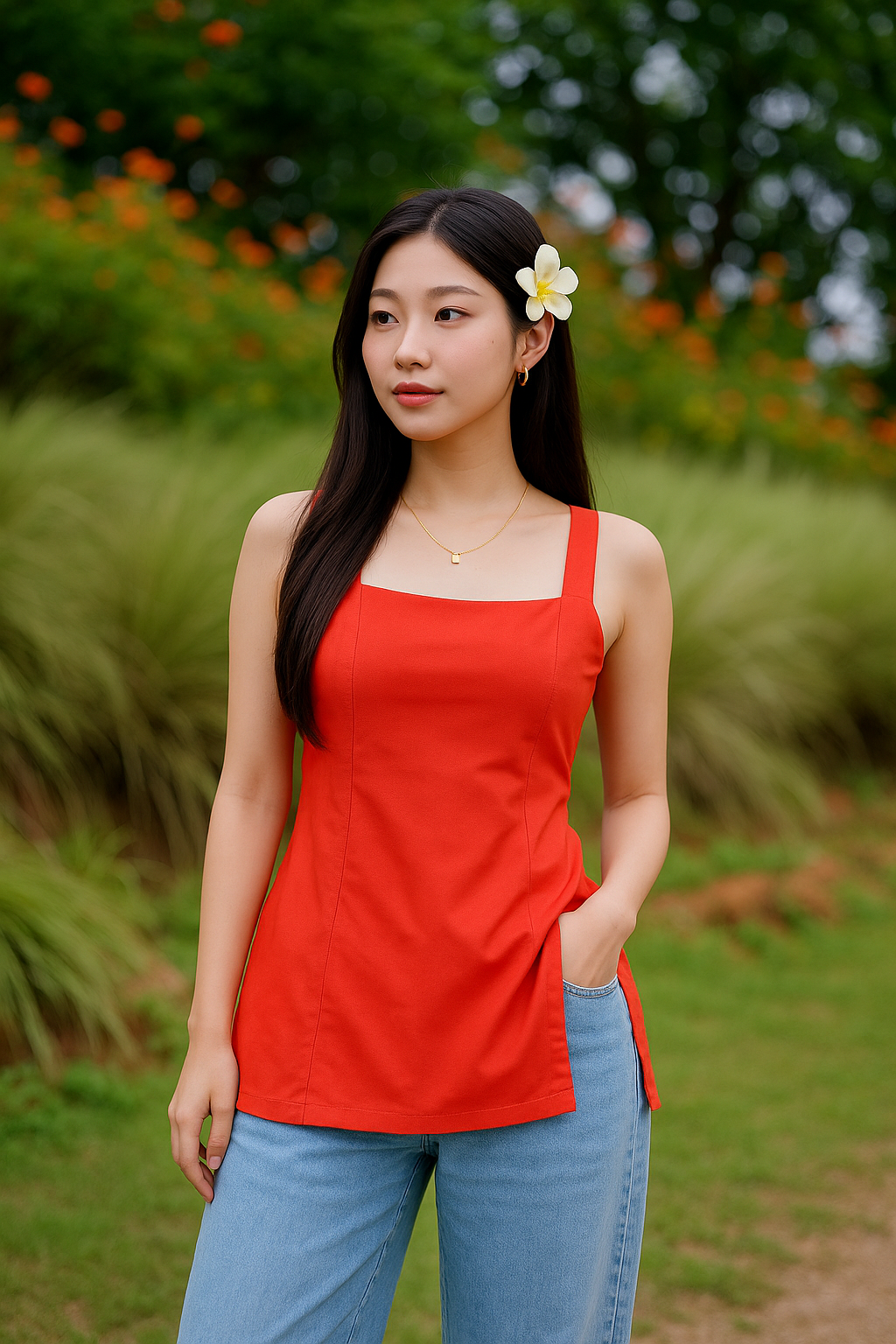 • Front design: Simple and chic with a square neckline and broad straps, giving it a clean modern vibe.