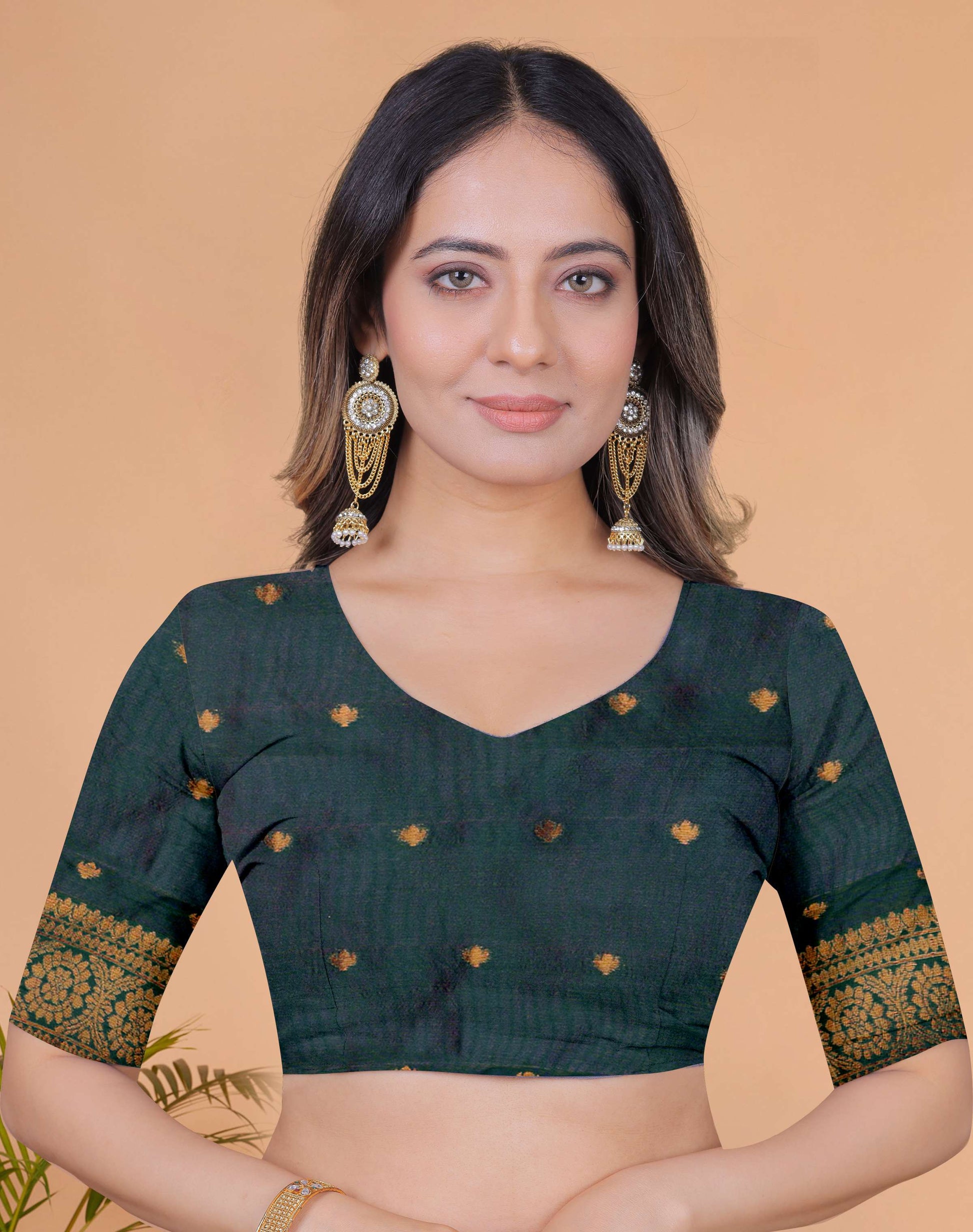 Make a statement of elegance with the Crimson Majesty Banarasi Silk Saree, a mesmerizing blend of cherry red and bottle green. Adorned with all-over floral buttas and a contrast green-gold zari border, the saree showcases heritage-inspired craftsmanship with a majestic zari-woven pallu.