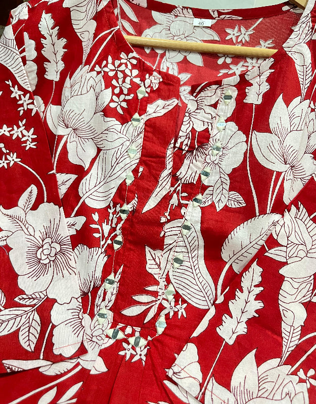 Graceful Red Mirror Work Kurti