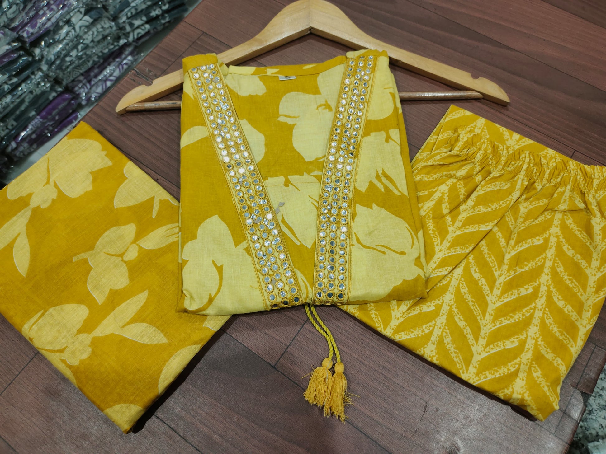 New Designer Yellow Floral Cotton Suit Set