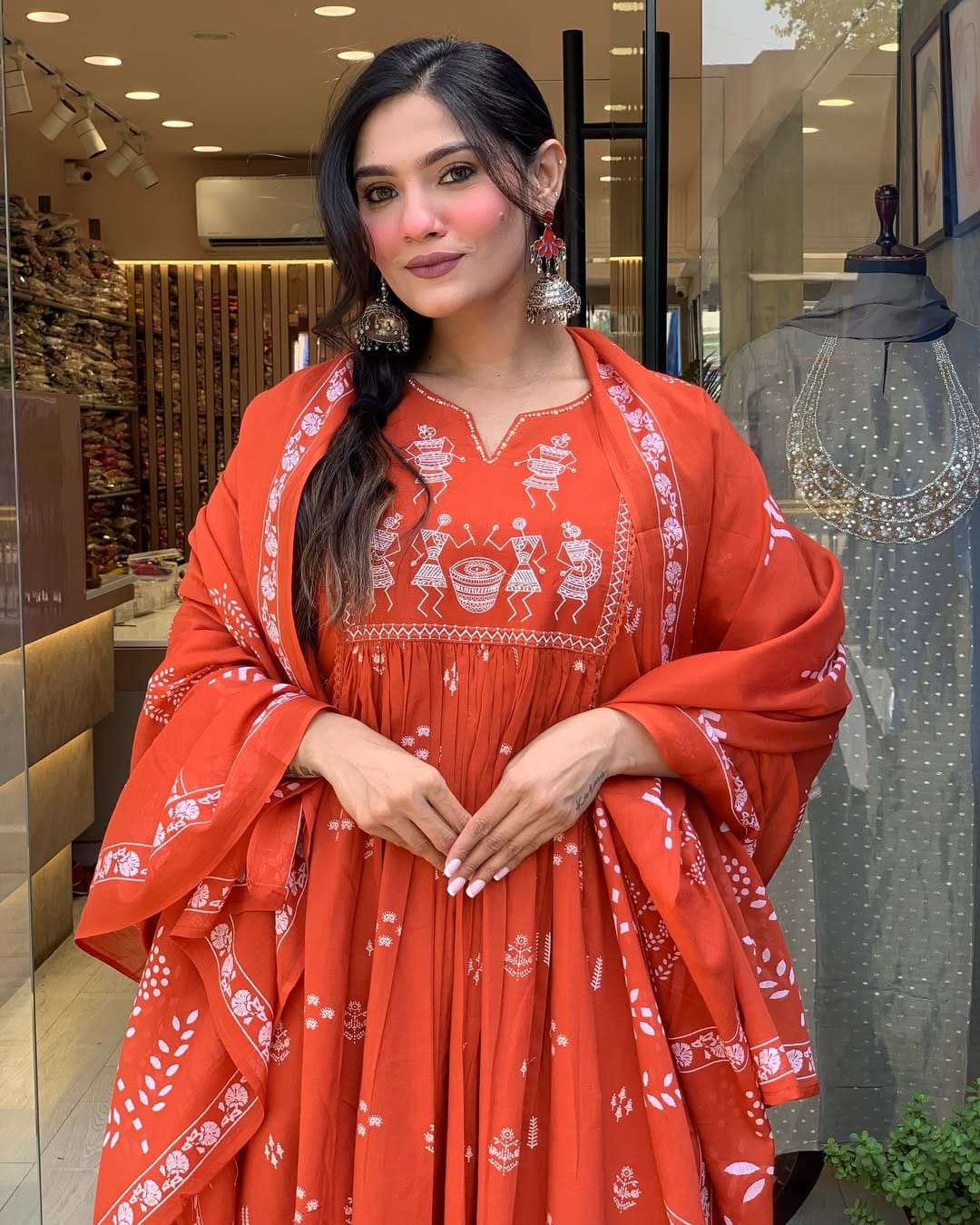 Orange Ethnic Anarkali Kurta Pant with Dupatta Set