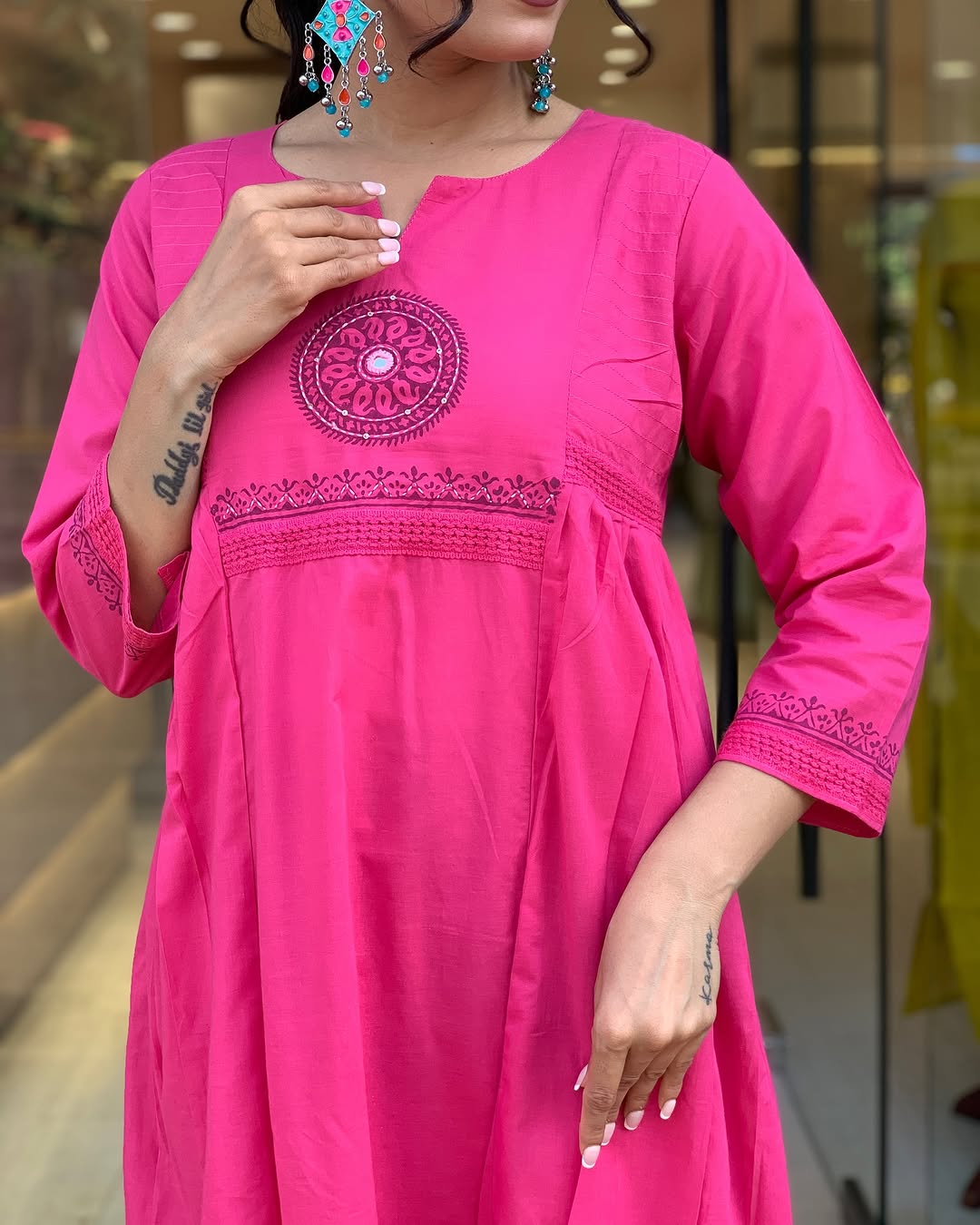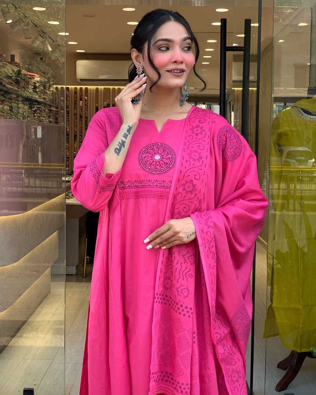 Pink Designer Cotton Kurta Pant with Dupatta Set