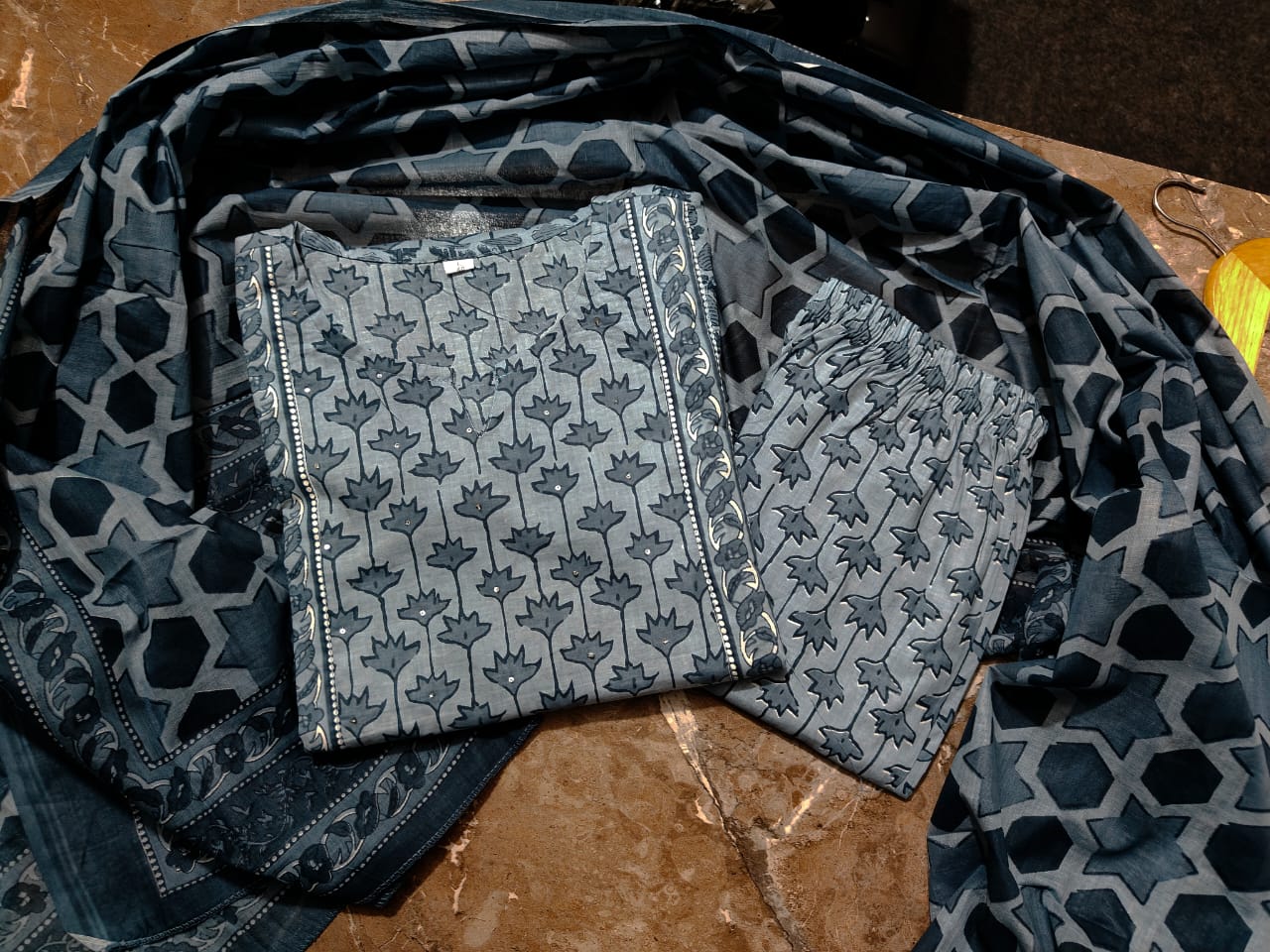 This Straight pant set is perfect for the summer season with its vibrant print and confident. Plus, the included matching dupatta completes the look and adds an extra touch of style.