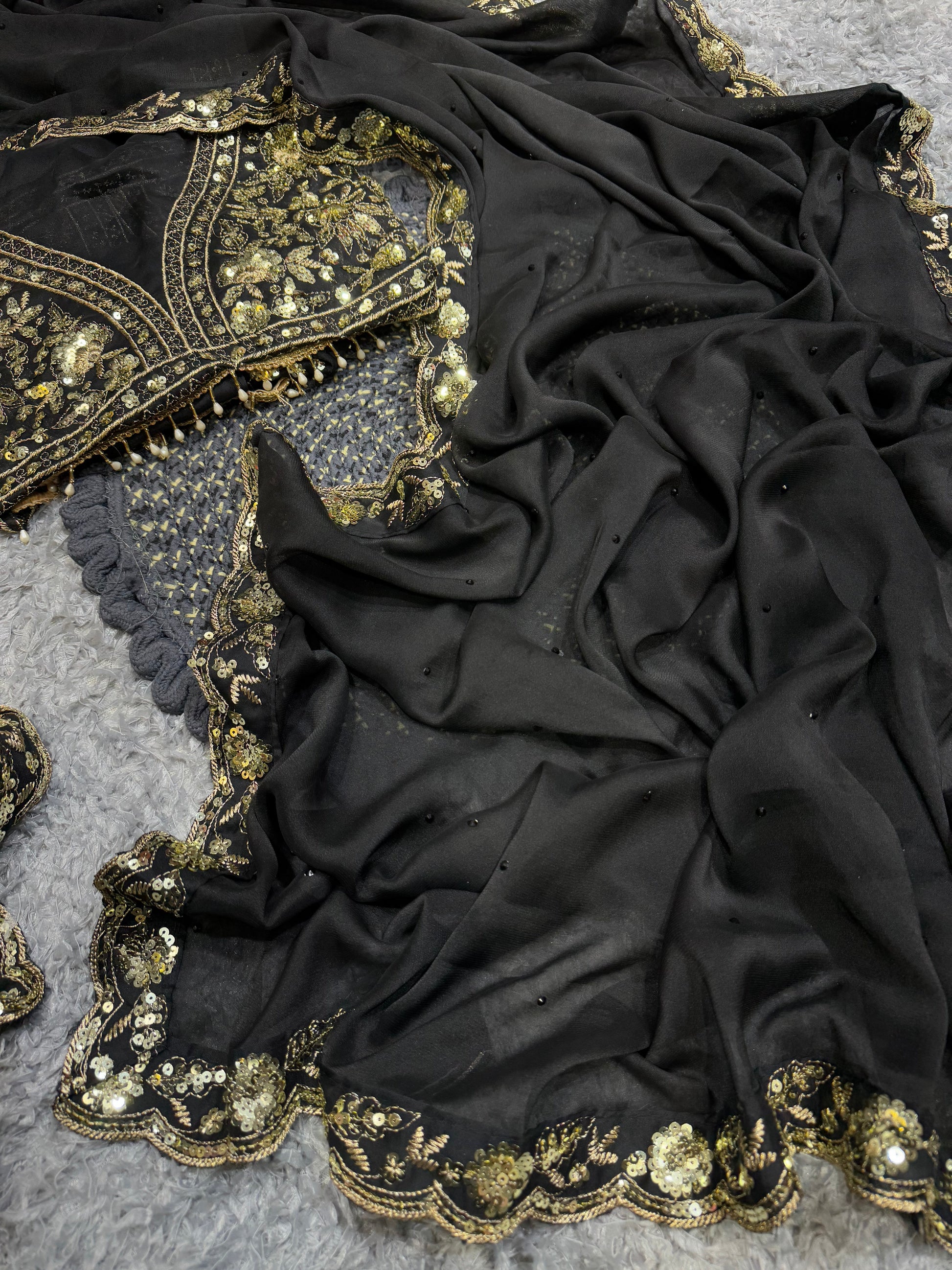 BLOUSE : Sequins embroidery work in Rangoli silk with fancy latkan lace border (FRONT AND BACK WORK)