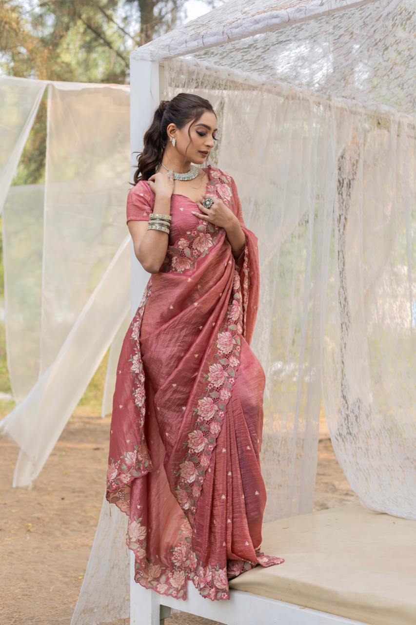👉🏻Description - Pure crush silk saree with all over embroidery design and cut work design.