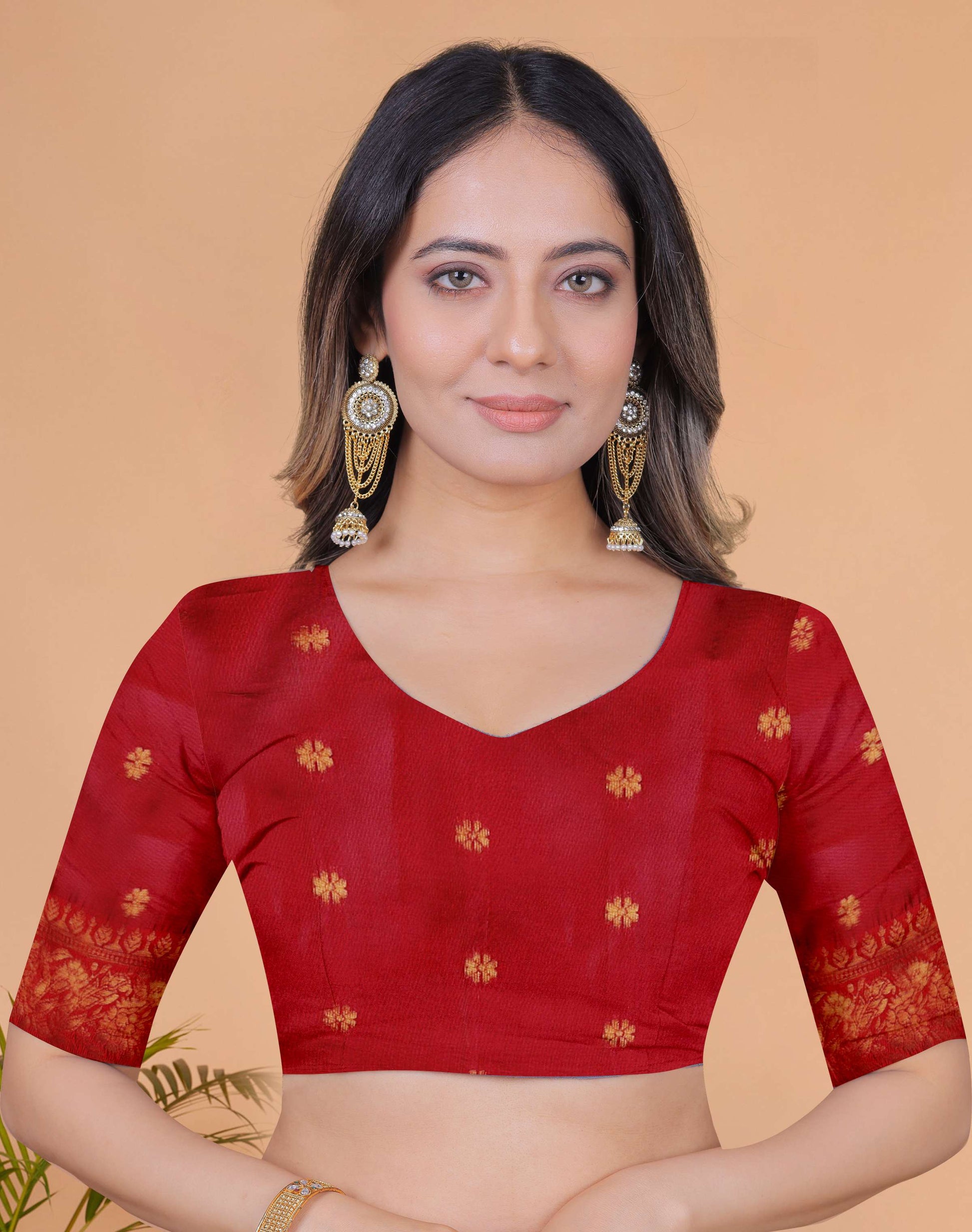 Elevate your ethnic wardrobe with the Royal Radiance Banarasi Silk Saree, a stunning blend of antique gold silk and rich maroon highlights. Intricate floral buttas adorn the body, while the luxurious red-gold zari pallu and broad border showcase traditional craftsmanship at its finest.