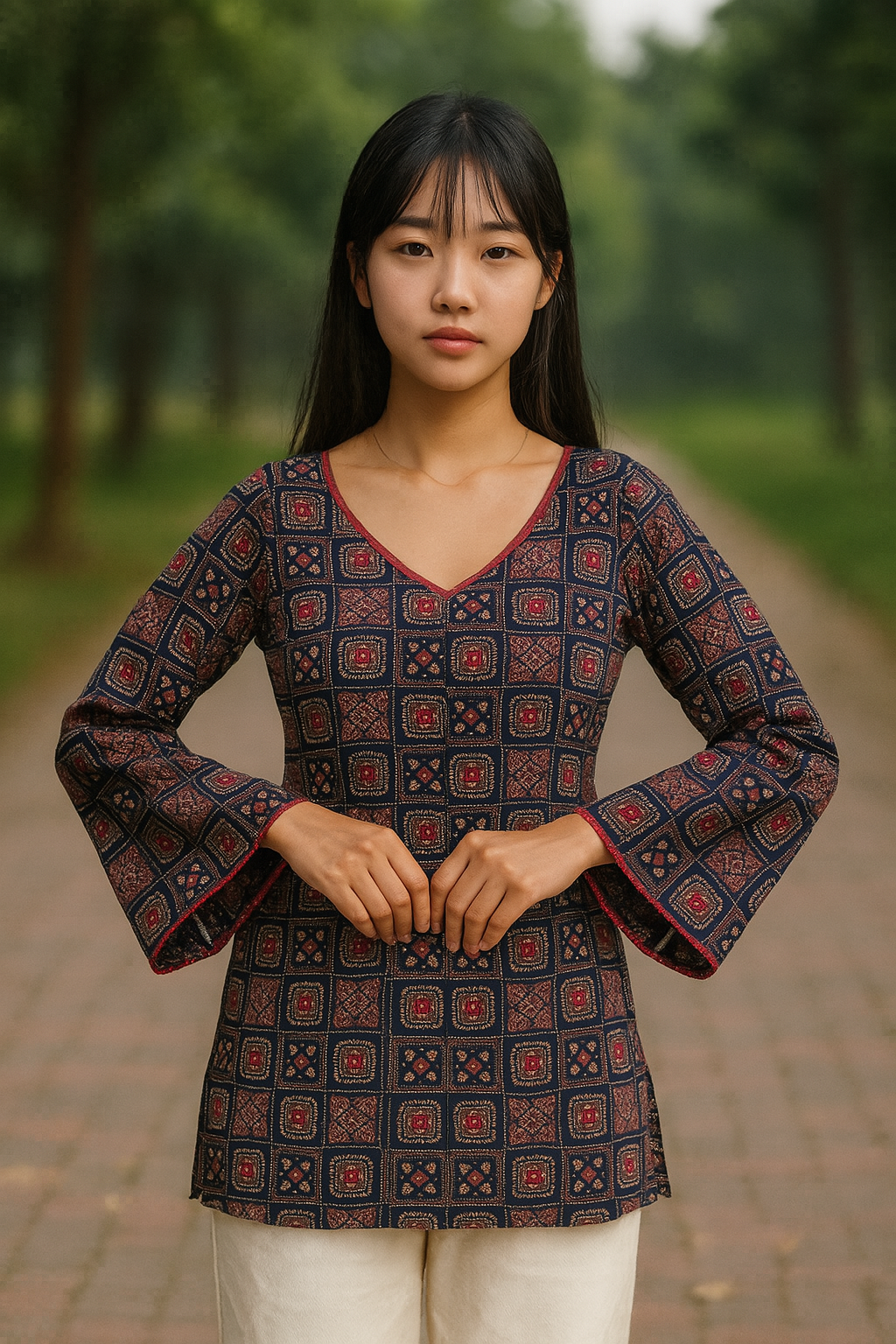 • Style it with straight pants, palazzos, or jeans for a chic fusion ensemble.