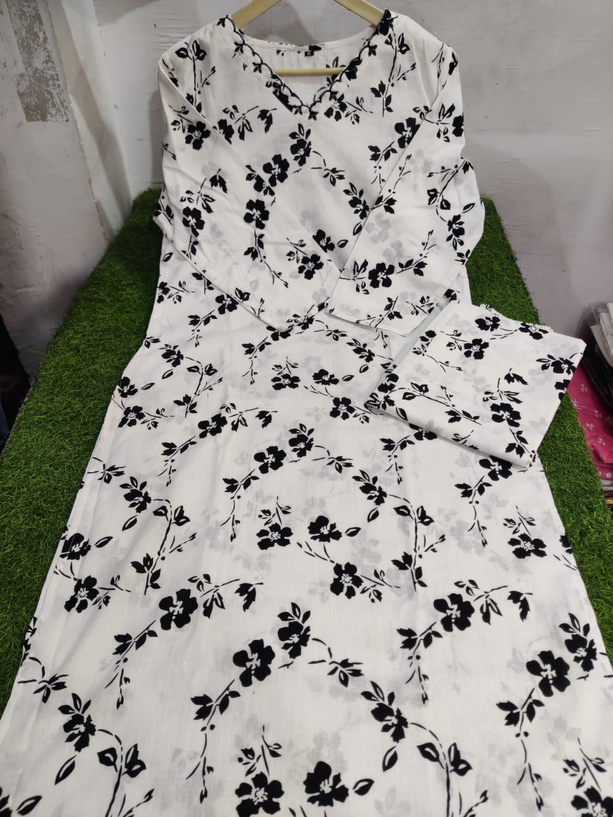 Women Cotton White Kurta and Plazzo Set