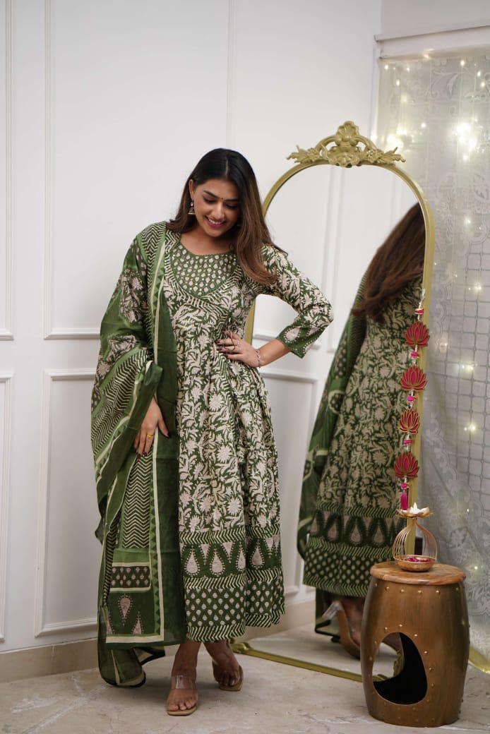 Product Name: Printed Anarkali Kurta Set with Trousers and Dupatta