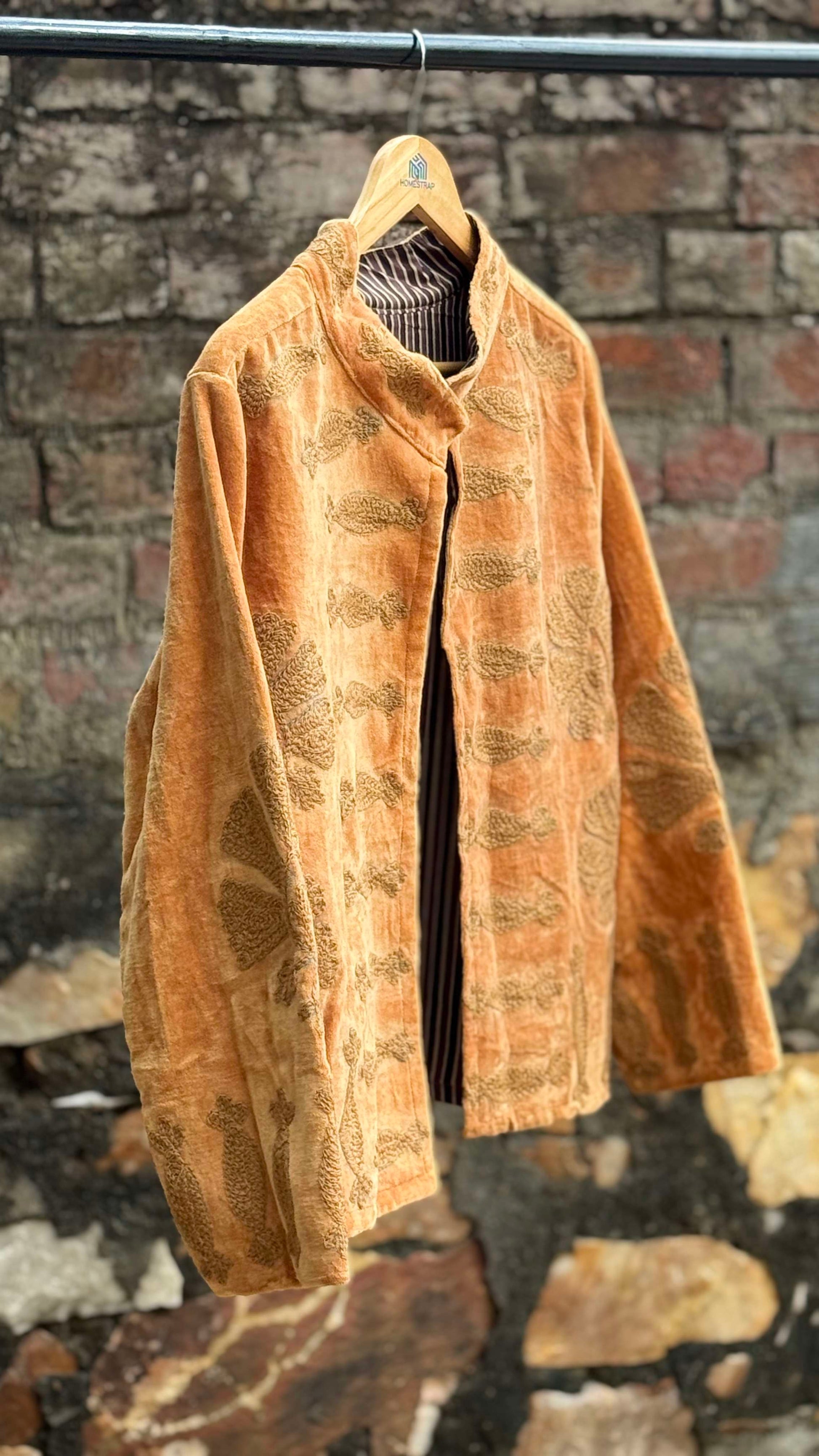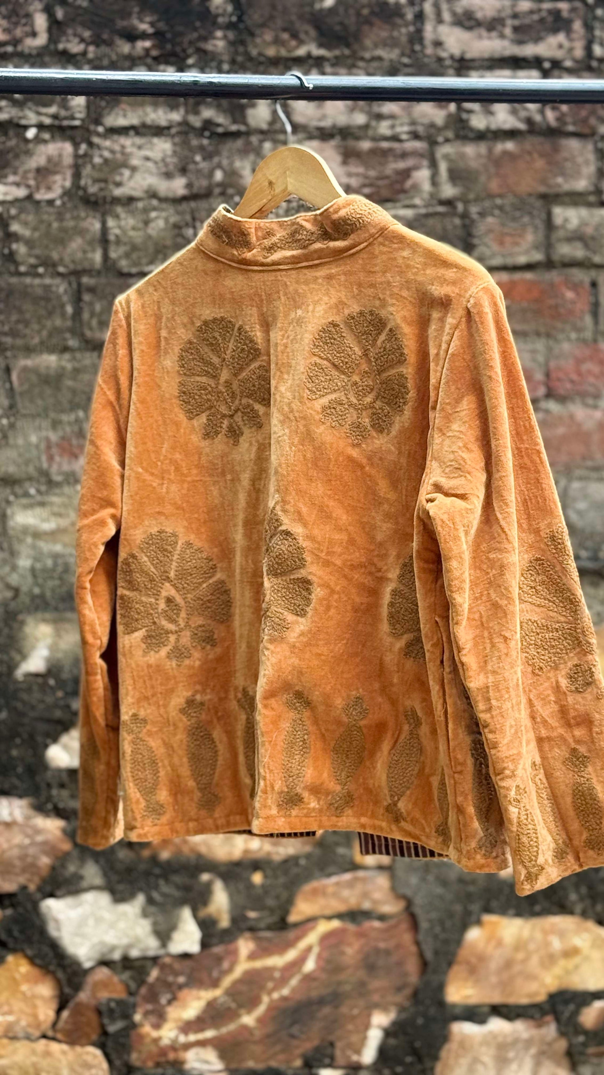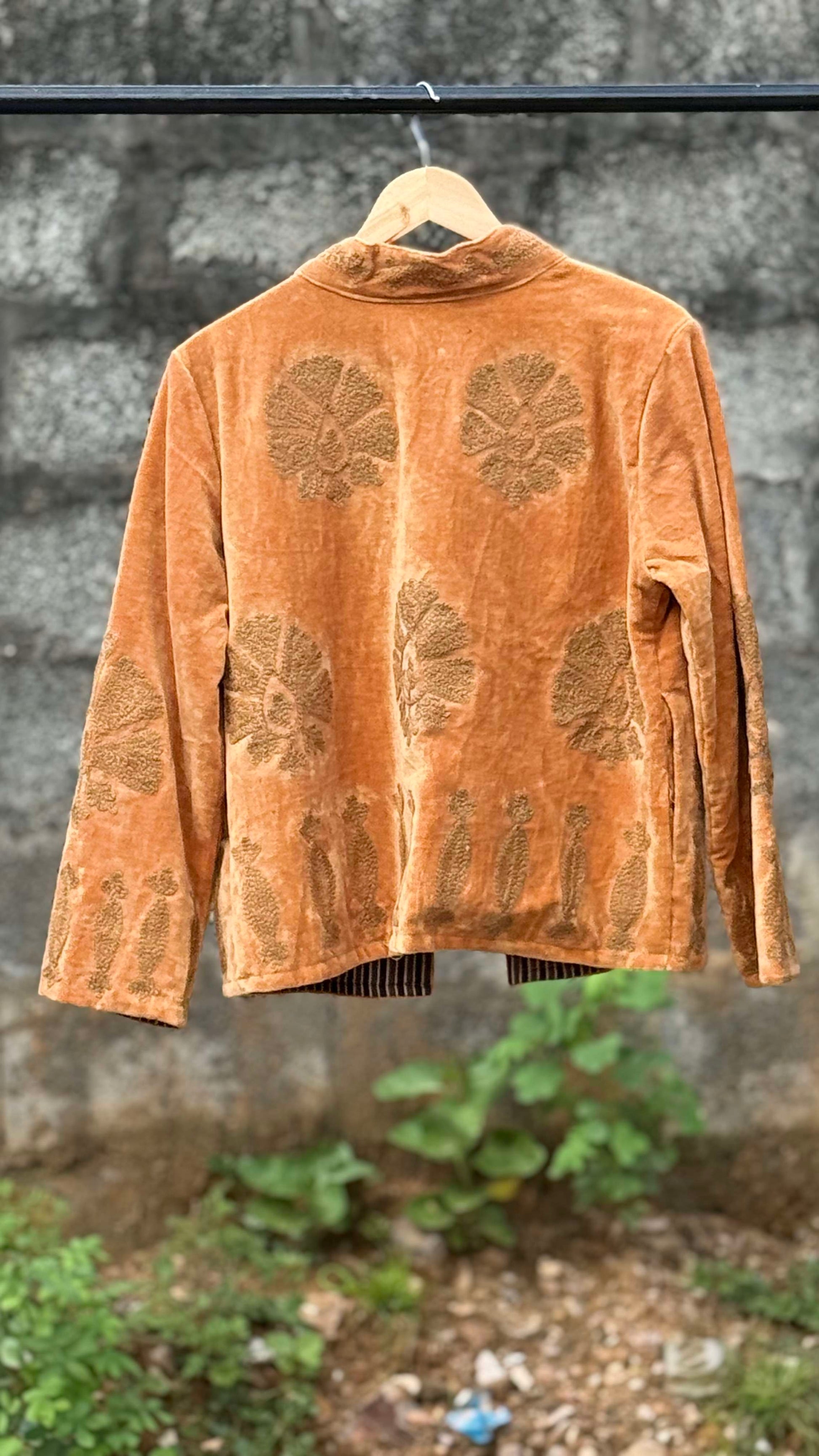 Womens Gold Velvet Embroidered Jacket with Floral Design